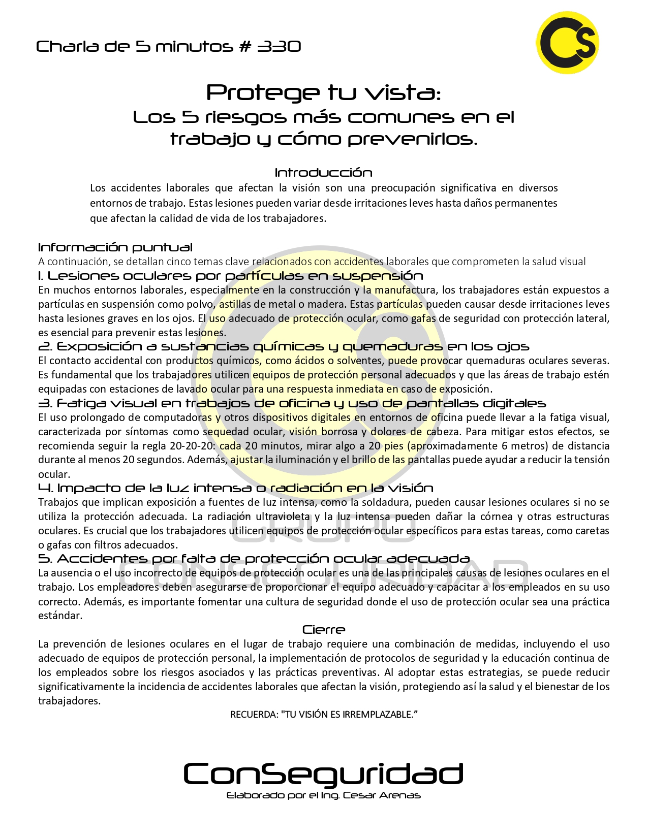 Protege tu vista: Los 5 riesgos más comunes en el trabajo y cómo prevenirlos.